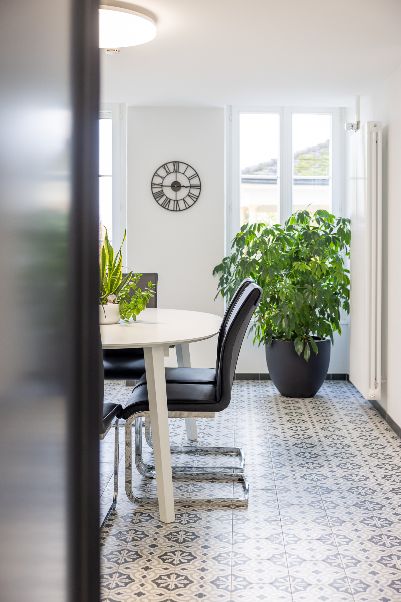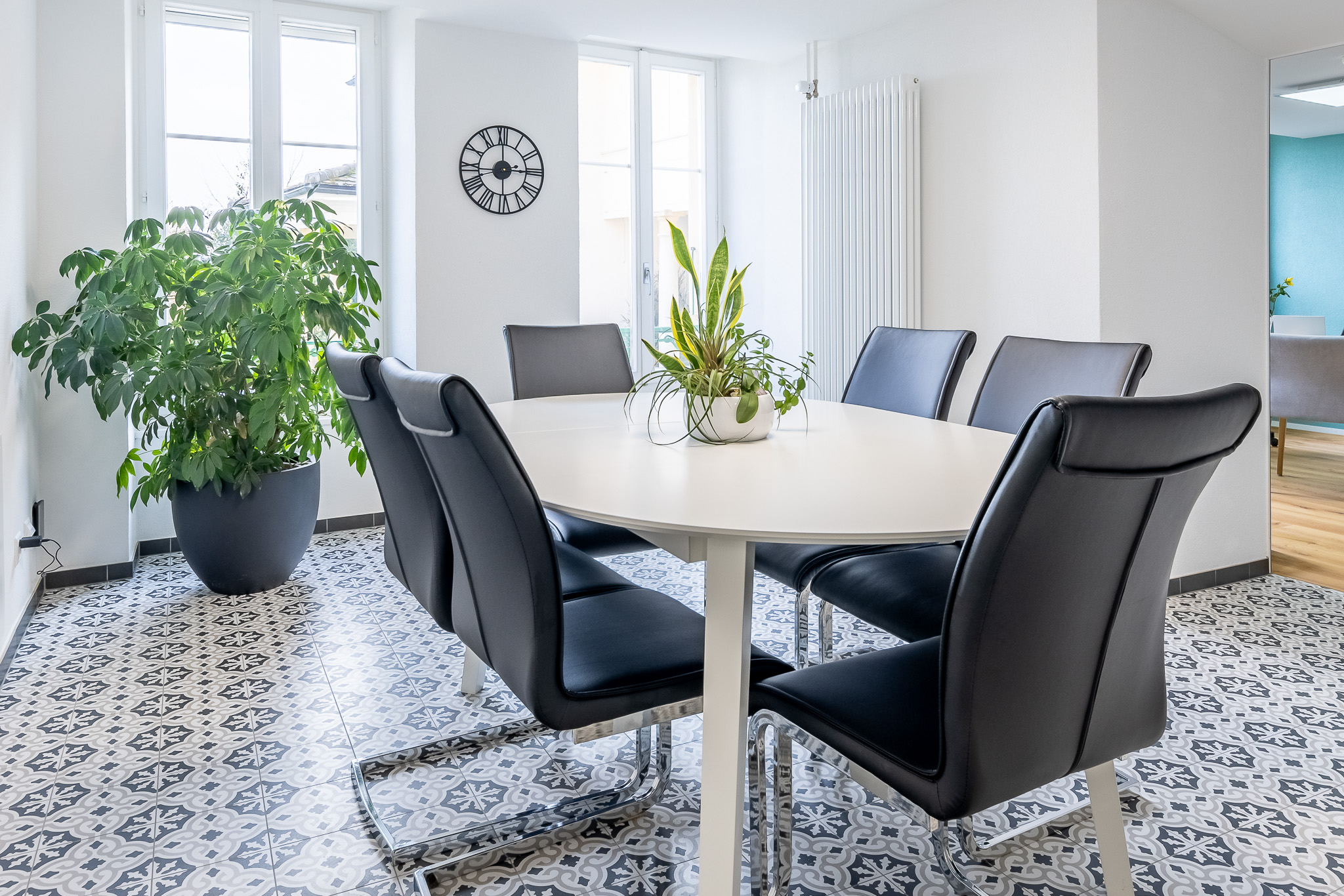 Parloir - Le château de Constantine Mobilier minimal, prédominance du noir et du blanc, le sol est le véritable protagoniste. CONTACTEZ-MOI POUR UN DEVIS