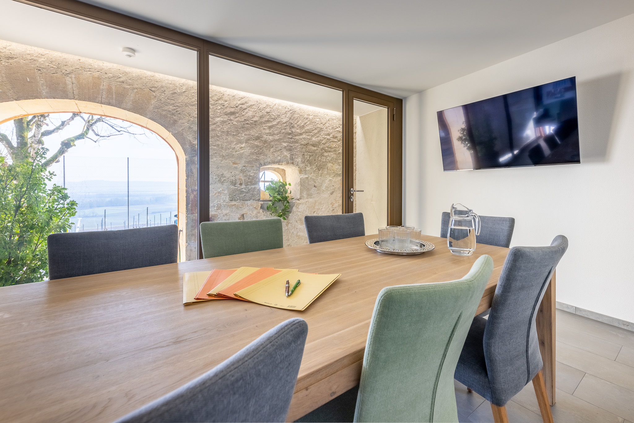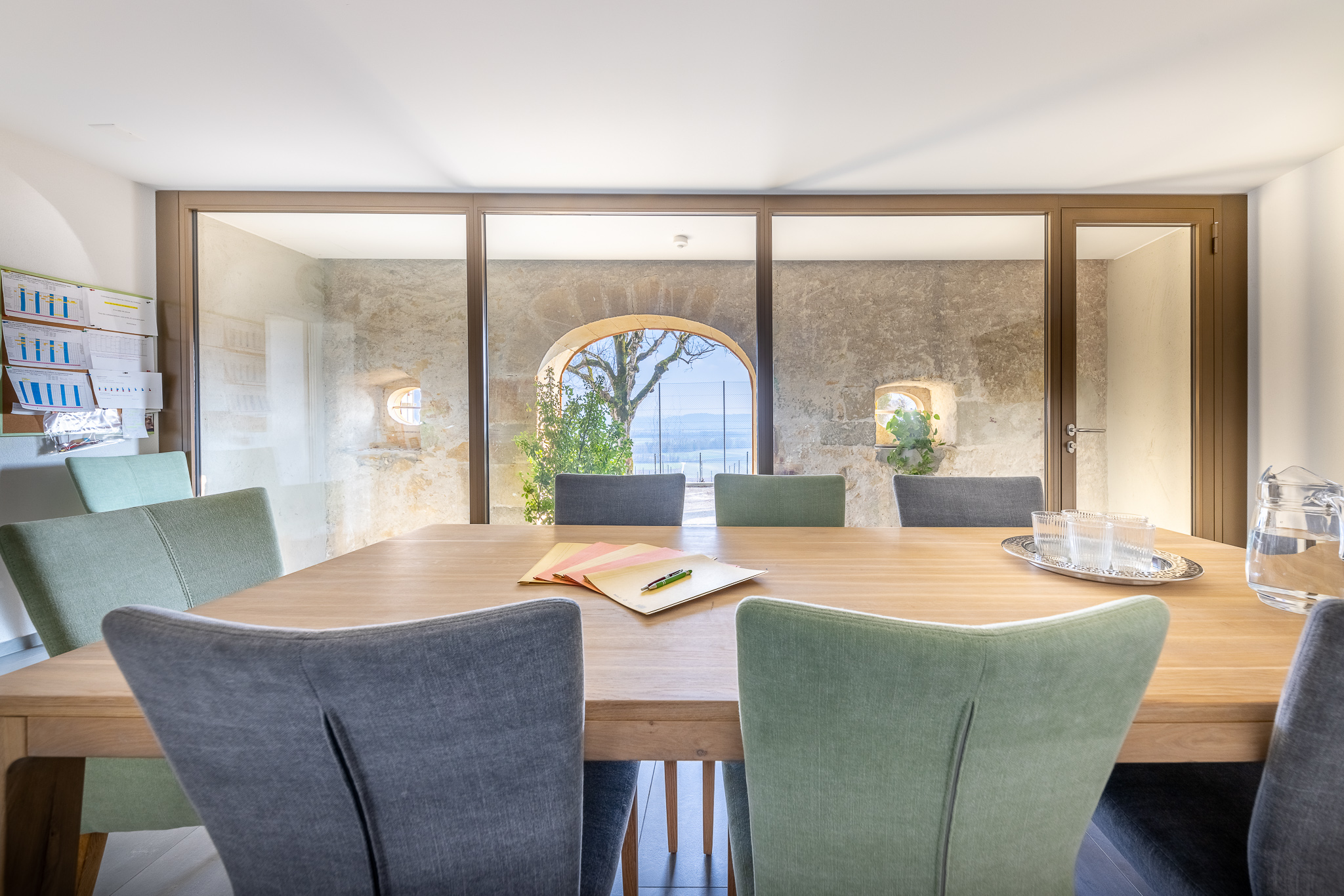 Salle de réunion - Le château de Constantine Harmonie des couleurs, douceur et beaucoup de lumière, la pierre nue est mise à l’honneur. CONTACTEZ-MOI POUR UN DEVIS