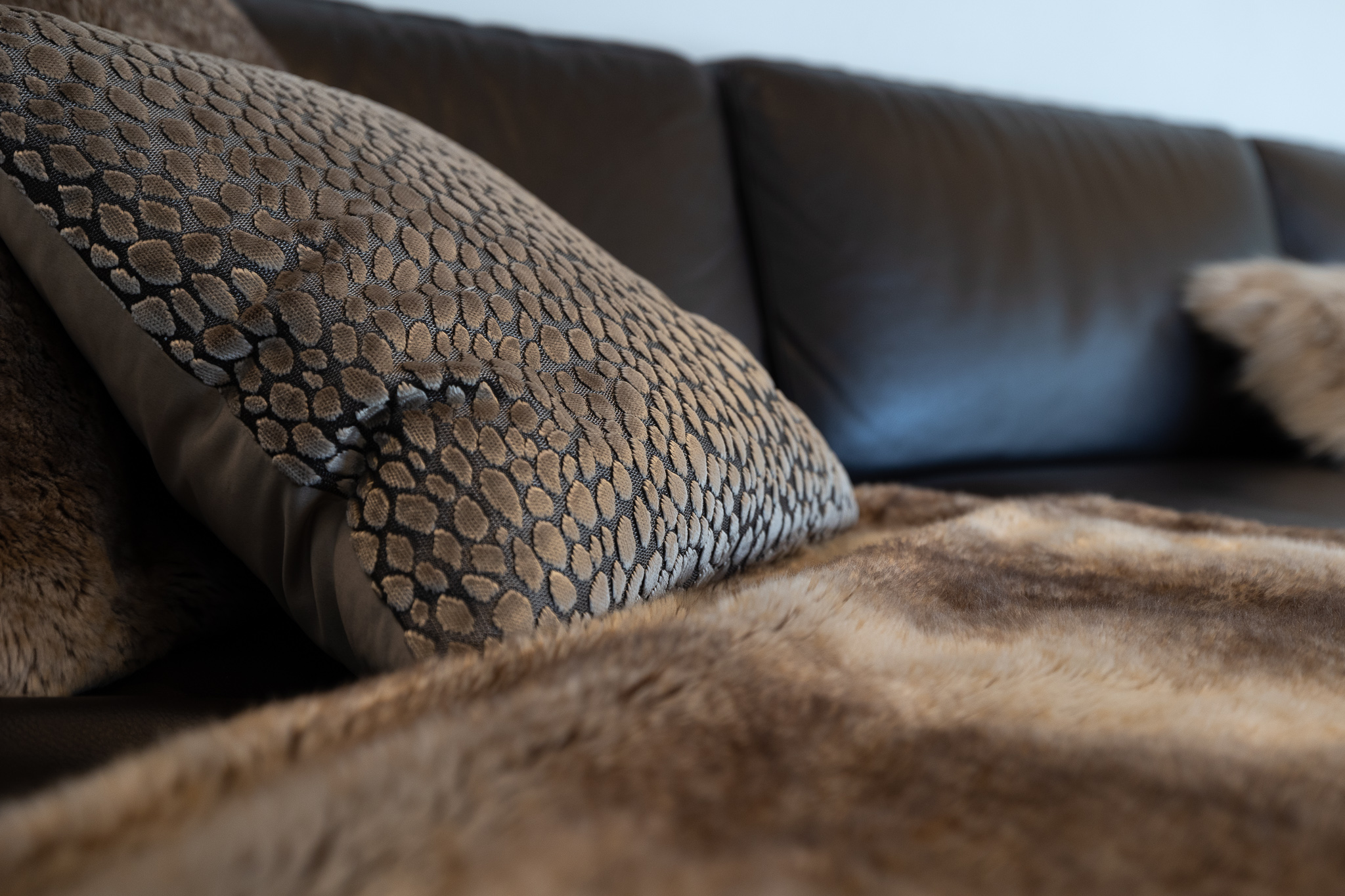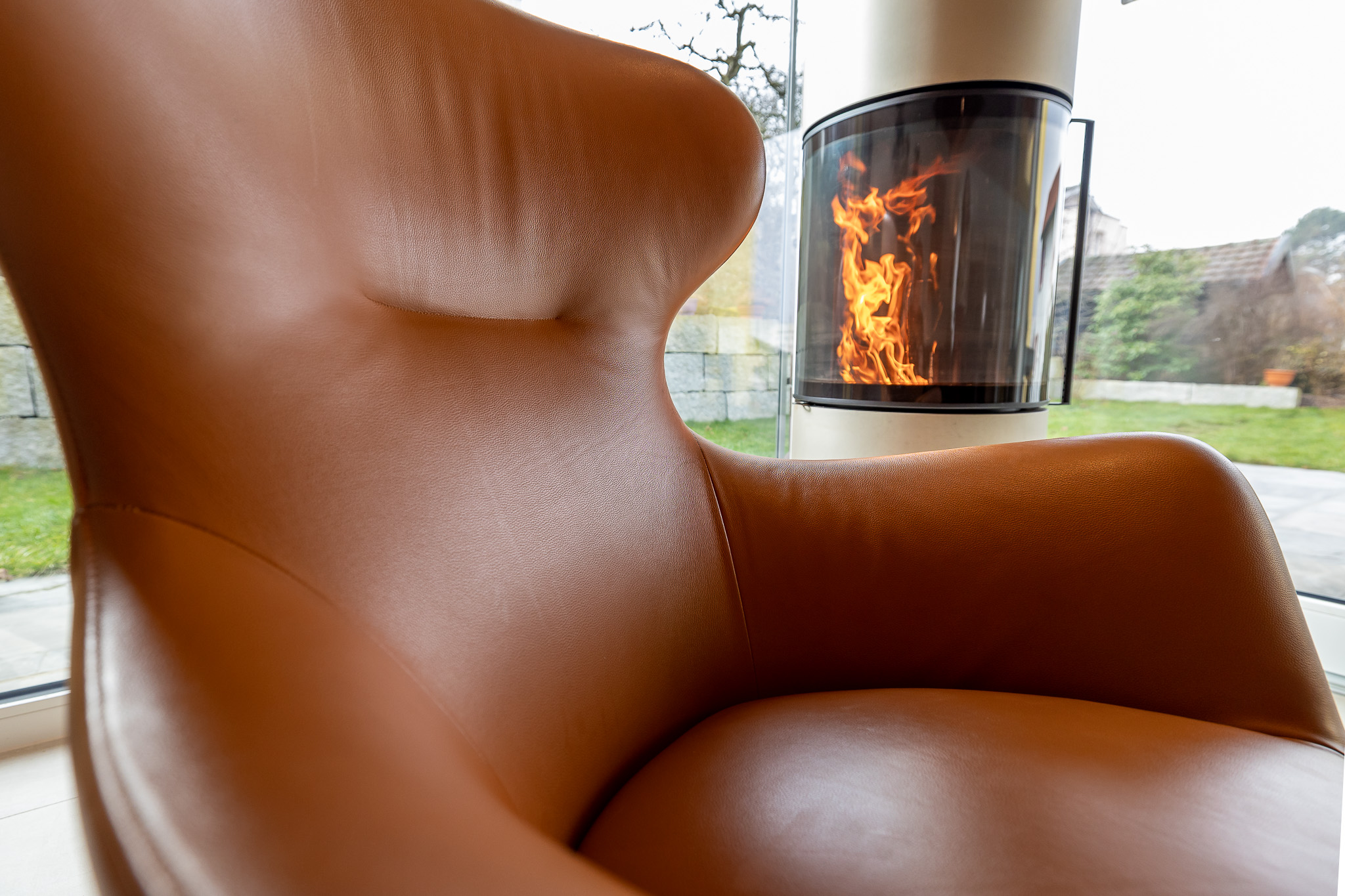 Tableau de Roger de Coninck, fauteuil en cuir de Poliform.