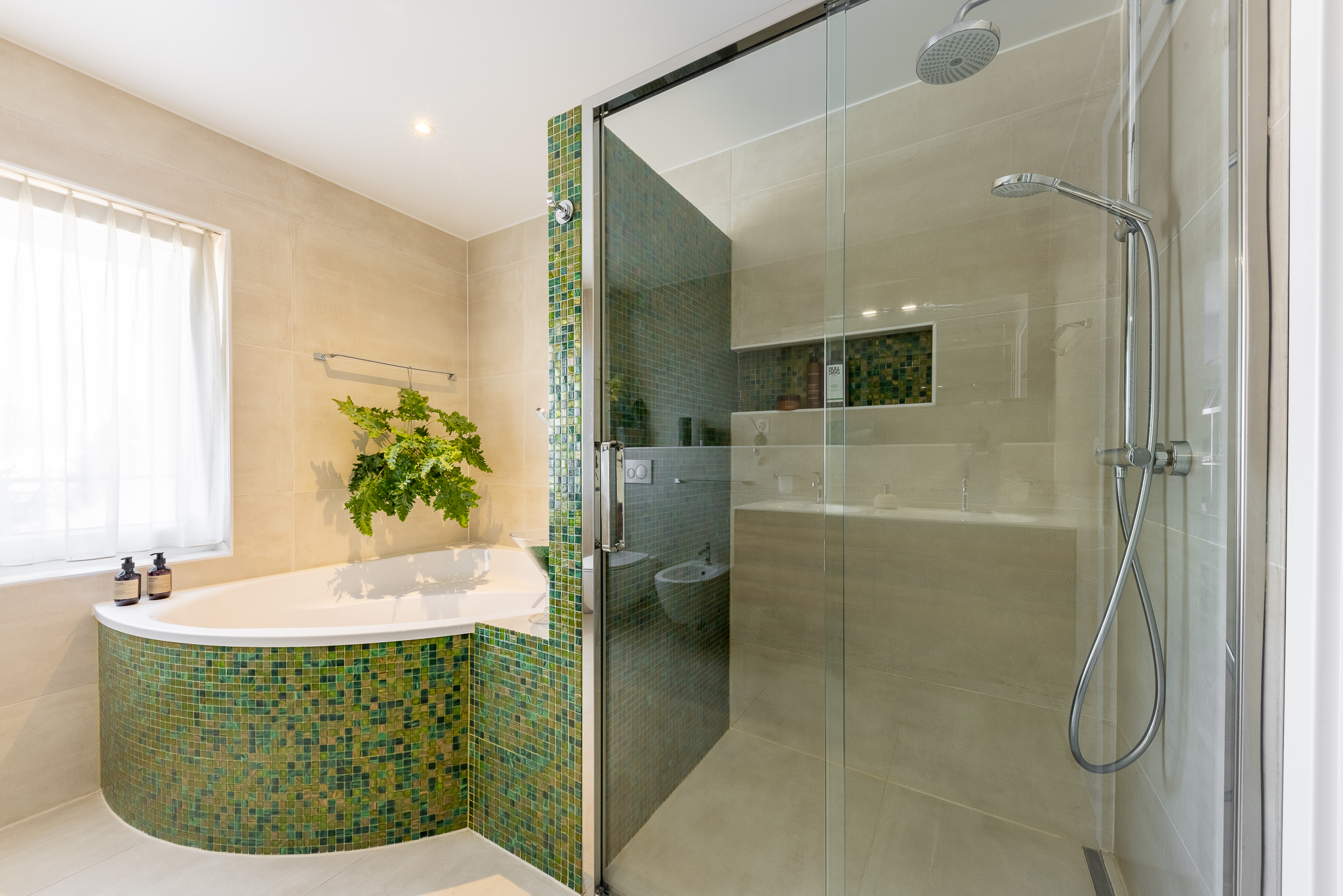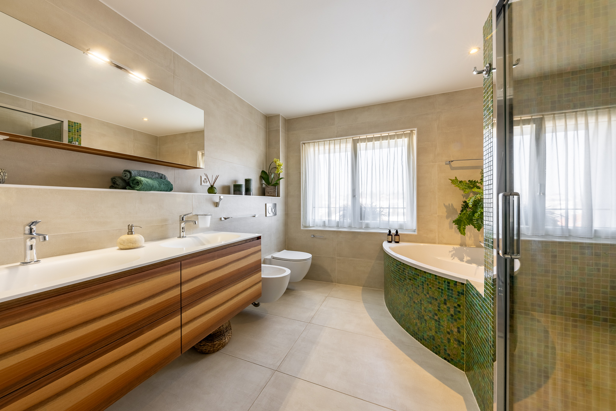 Grande salle de bains - Maison Toilettes, lavabo et bidet Ceramica Cielo, revêtement Monocibec, mosaïque Bisazza, robinetterie Hansgrohe. CONTACTEZ-MOI POUR UN DEVIS